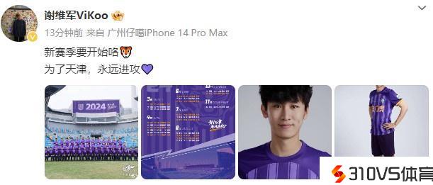 谢维军社媒发文:新赛季要末尾咯,为了天津,永远进攻
