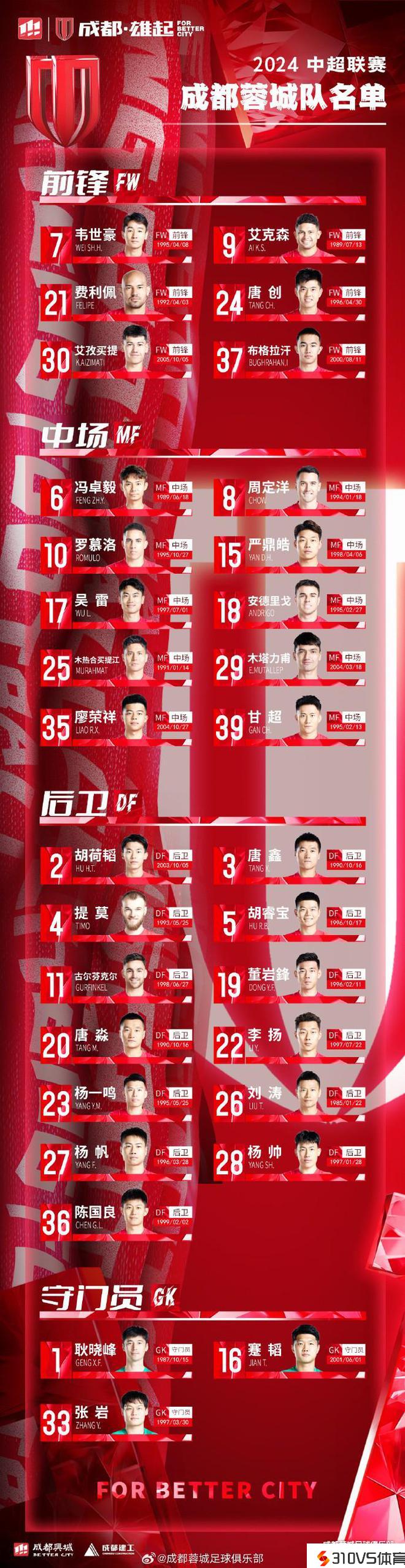 成都蓉城新赛季大名单:罗慕洛领衔5外援,帕拉西奥斯未报名