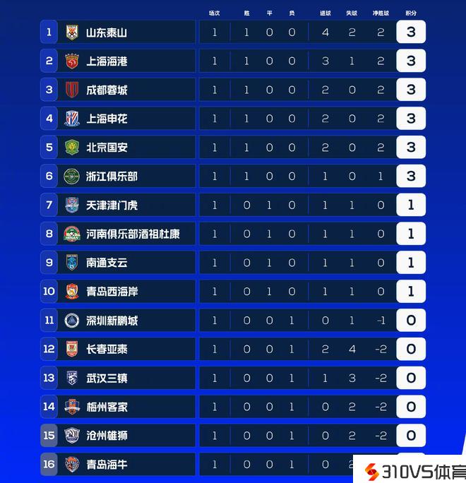 经过3个竞赛日的角逐,2024年中超联赛首轮的8场竞赛全部完毕,最新的积分榜也曾经出炉。