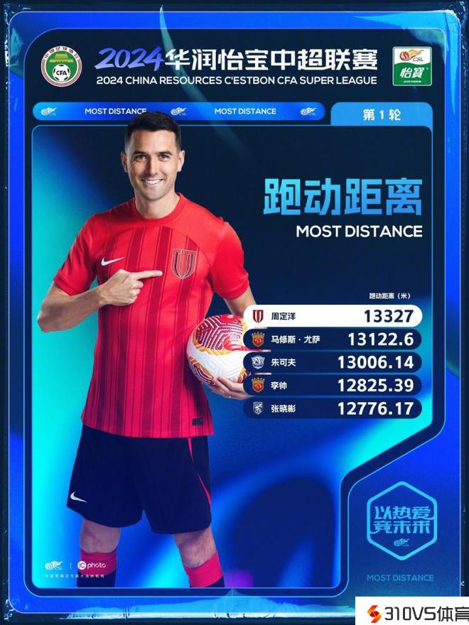 首轮跑动距离榜:周定洋13327米居首,海港队两人跻身前五位