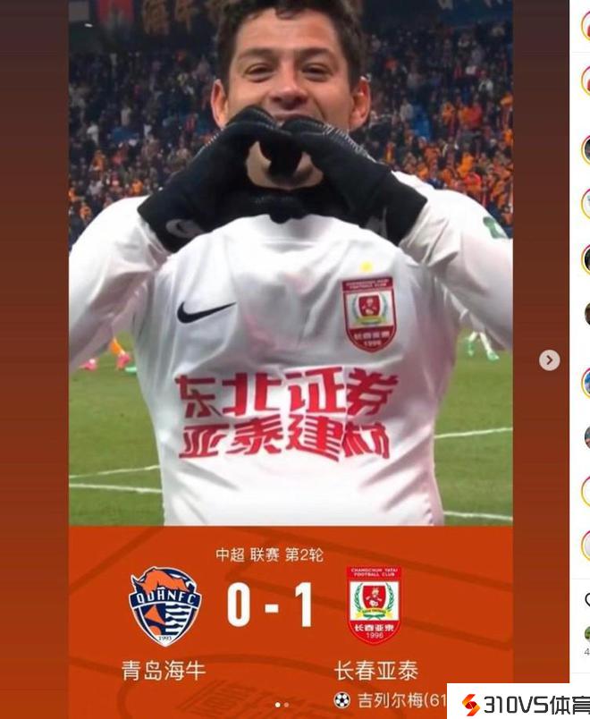 有排面,吉列尔梅庆贺亚泰生涯处子球,配图用的我懂战报截图