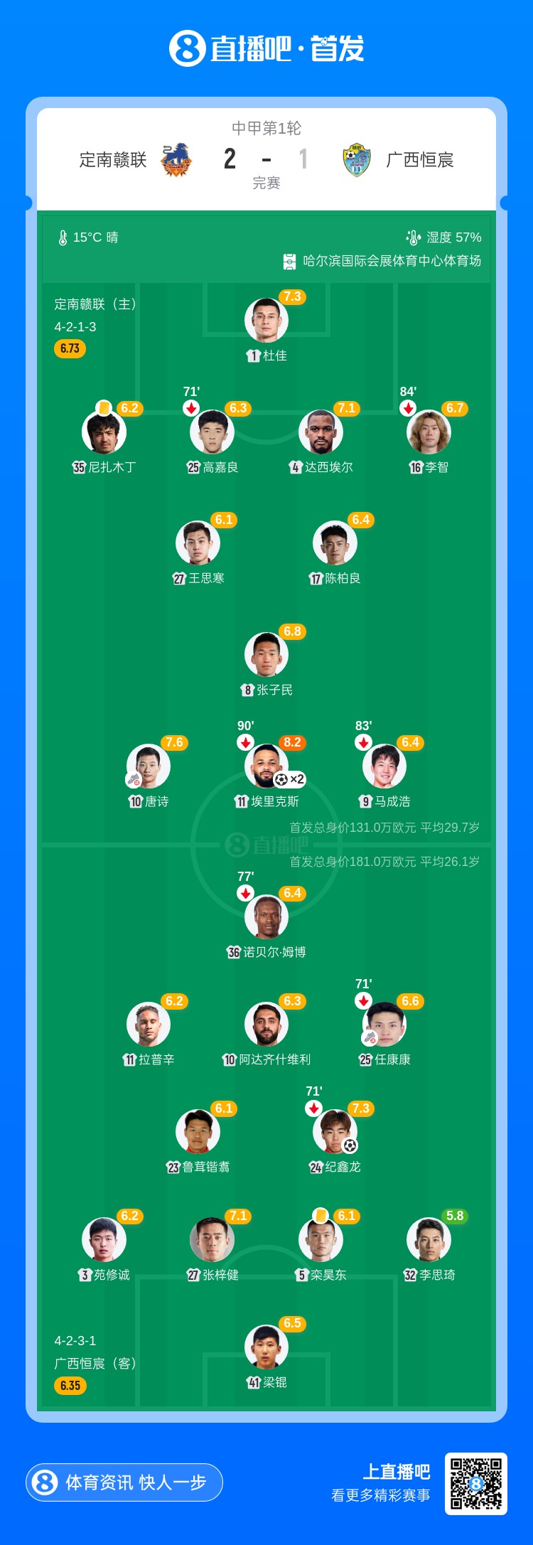 中甲首轮:定南赣联2-1广西恒宸取开门红 埃里克斯梅开二度