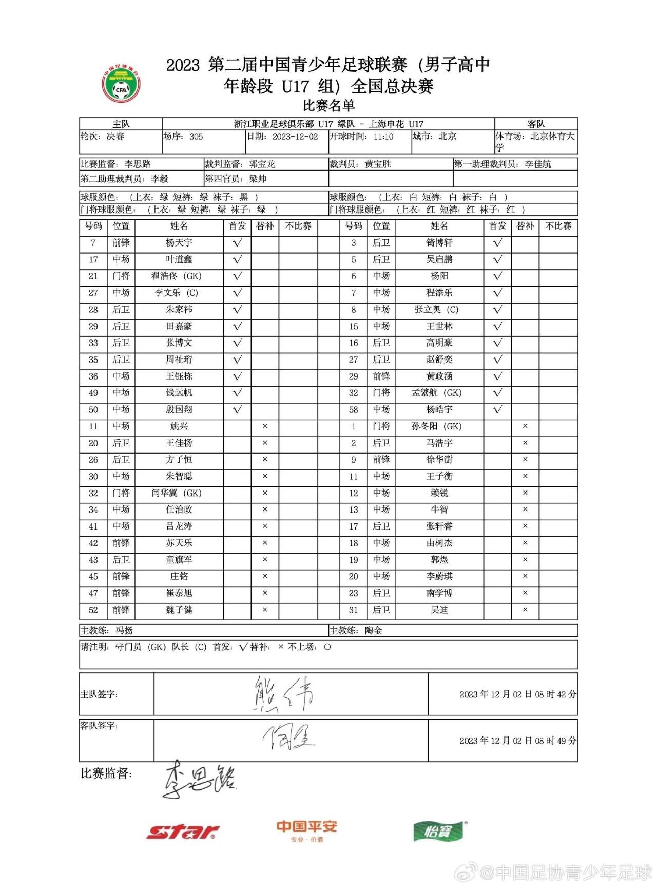 中青赛U17组决赛:杨天宇补射制胜,浙江1-0申花夺冠!