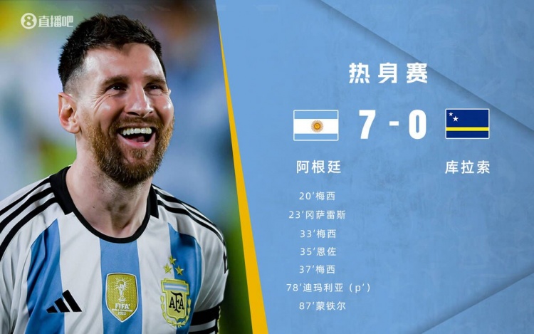 友谊赛-梅西3射1传&国家队破百球 阿根廷7-0库拉索