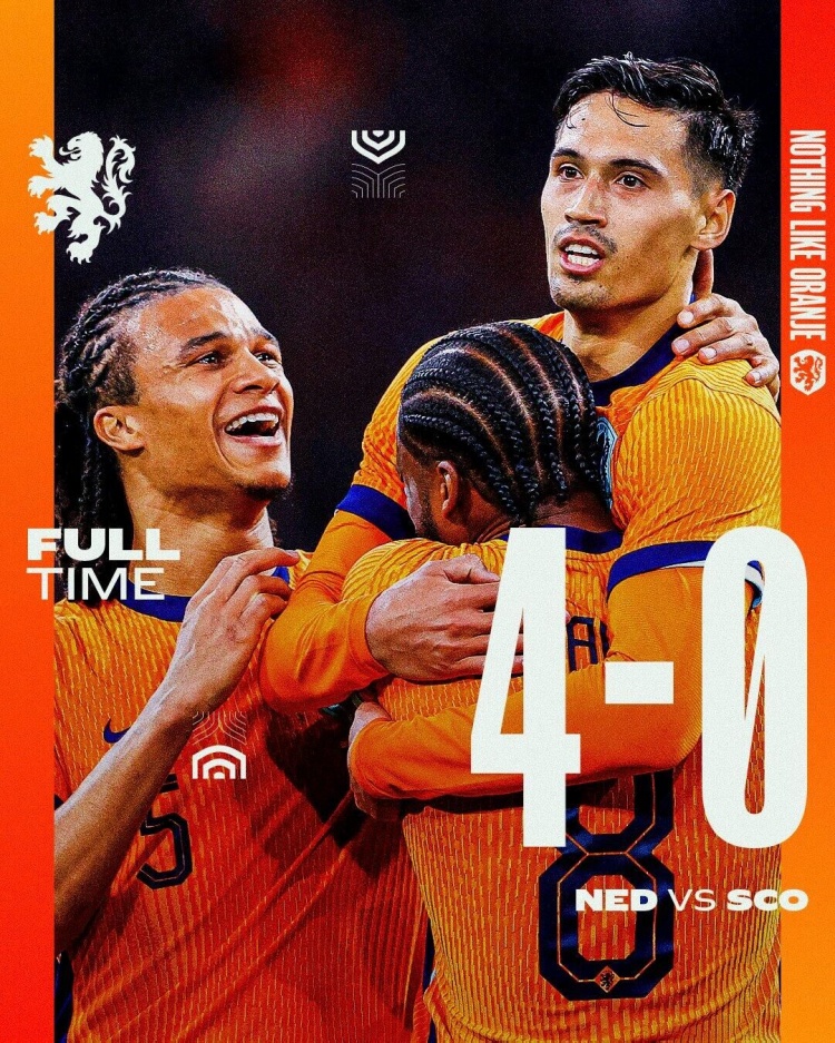 友谊赛-荷兰4-0大胜苏格兰 赖因德斯传射+世界波加克波助攻双响
